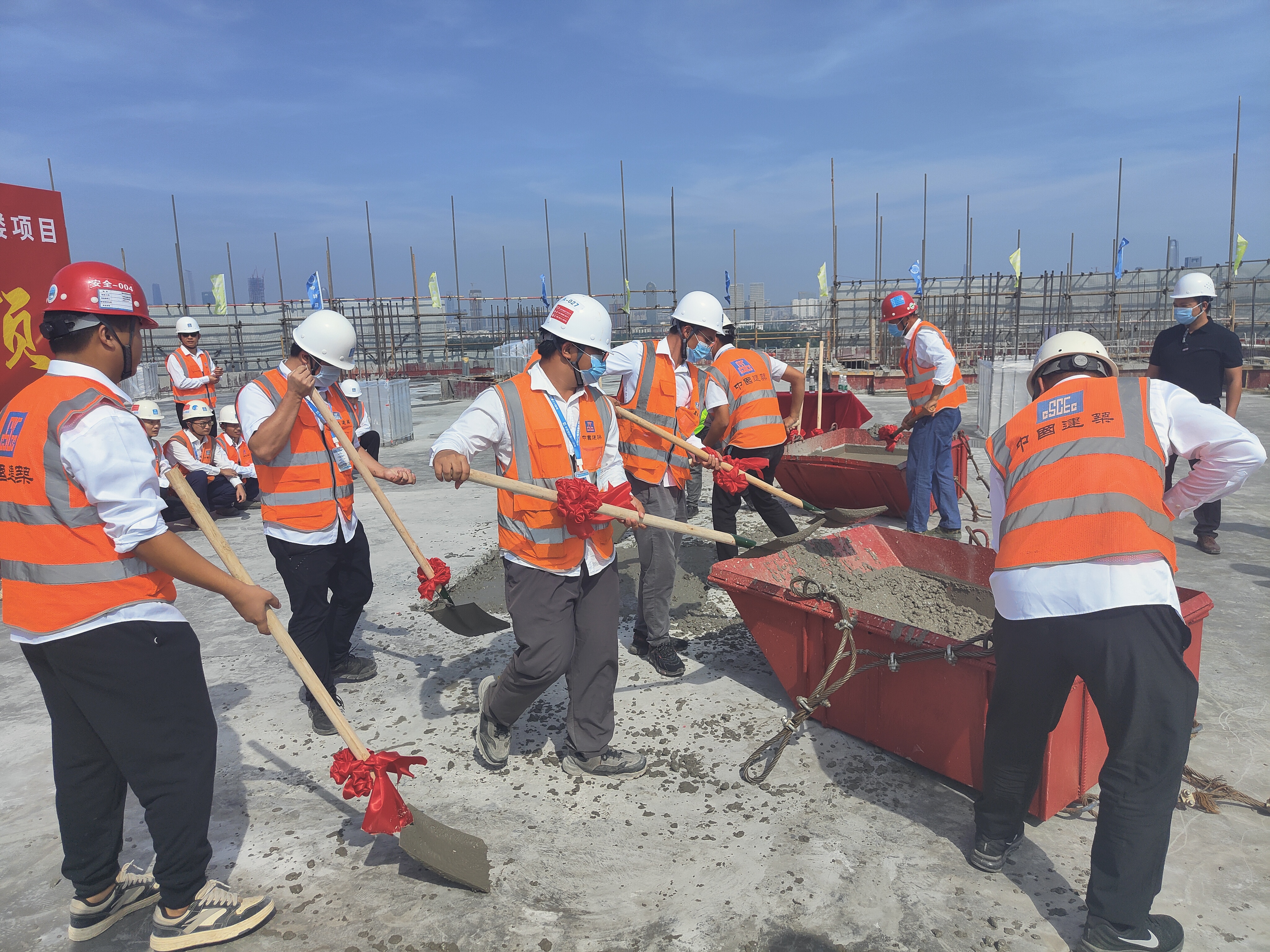 10月30日,細(xì)胞研發(fā)樓項(xiàng)目舉辦主體結(jié)構(gòu)封頂儀式。中建八局一公司副總經(jīng)理兼華南公司黨總支書記、總經(jīng)理谷力,華南公司黨總支副書記,副總經(jīng)理王升華,副總經(jīng)理陳飛,建設(shè)單位、設(shè)計(jì)單位、監(jiān)理單位部分領(lǐng)導(dǎo)及項(xiàng)目全體管理人員共同見證這一時(shí)刻。
