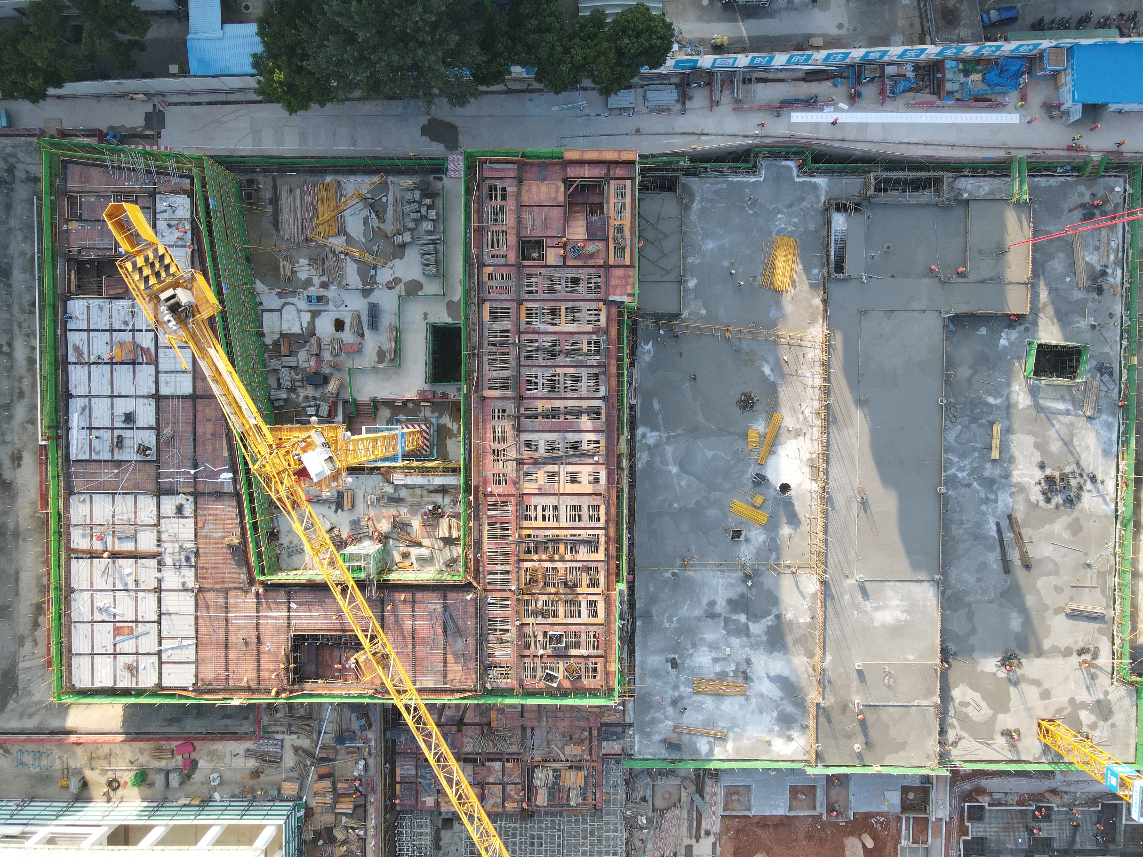 項目建設進展:施工現場分為A、B、C三個大區。A區在主體結構施工階段:A1區二層結構施工完成90%;A2區二層結構施工完成80%;A3區負一層結構施工完成100%;A4區負一層結構施工完成100%。B、C區在地基與基礎施工階段: B1區承臺及底板結構施工完成100%;B3區承臺及底板結構施工完成90%;C2、C4區承臺及底板墊層澆筑完成100%;C1區承臺及底板墊層澆筑完成60%。