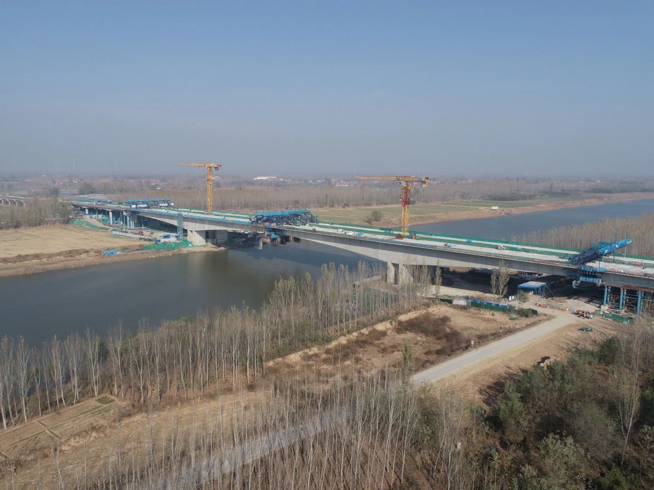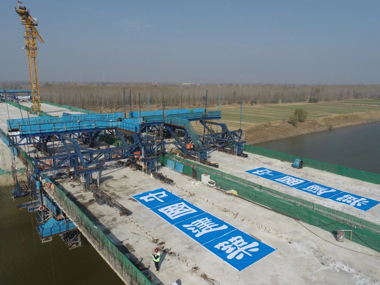 徒駭河特大橋全長1248.5米,共9聯,單幅橋寬16.5米,主跨長358.5米,最大跨徑165米,主橋采用單箱單室變截面,預應力混凝土連續梁結構形式,是徒駭河跨徑最大連續剛構現澆梁。