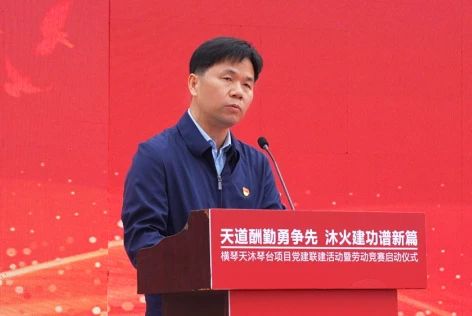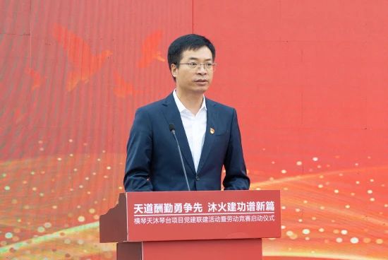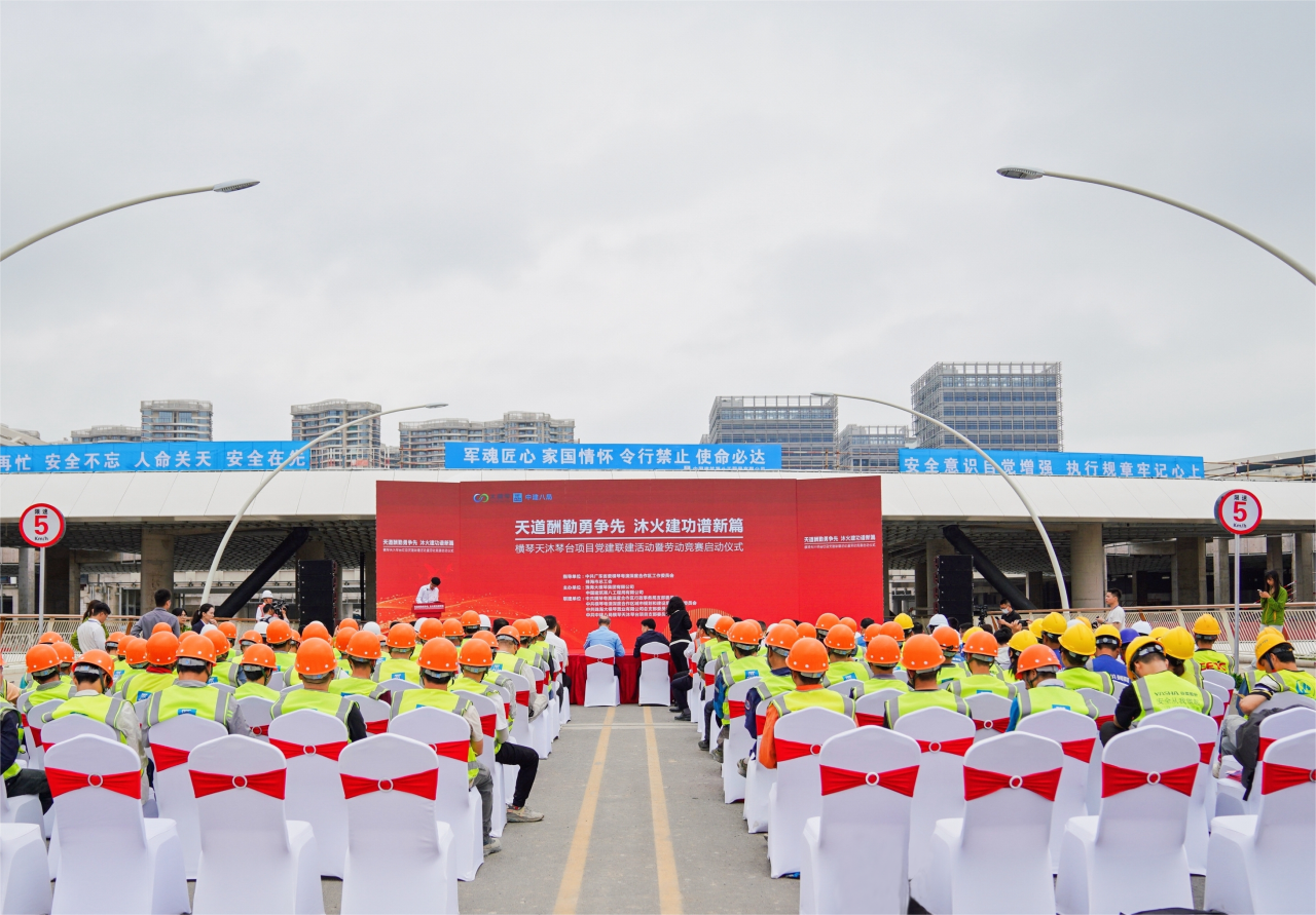 3月28日,橫琴天沐琴臺(tái)項(xiàng)目舉辦黨建聯(lián)建暨勞動(dòng)競賽啟動(dòng)儀式,按下項(xiàng)目建設(shè)“快進(jìn)鍵”。廣東省委橫琴工委黨建工作處處長童鐵丁,珠海市總工會(huì)黨組書記、常務(wù)副主席唐尚洪,橫琴粵澳深度合作區(qū)行政事務(wù)局副局長張文驥,城市規(guī)劃和建設(shè)局住房保障處處長鄭慧仙,珠海大橫琴集團(tuán)有限公司副總經(jīng)理祝杰,珠海大橫琴置業(yè)有限公司黨總支書記、董事長唐文彬,中建八局華南分局黨委書記郭青松,中建八局一公司華南公司執(zhí)行總經(jīng)理、工會(huì)主席張志剛,以及各參建單位代表、工友代表參加活動(dòng)。