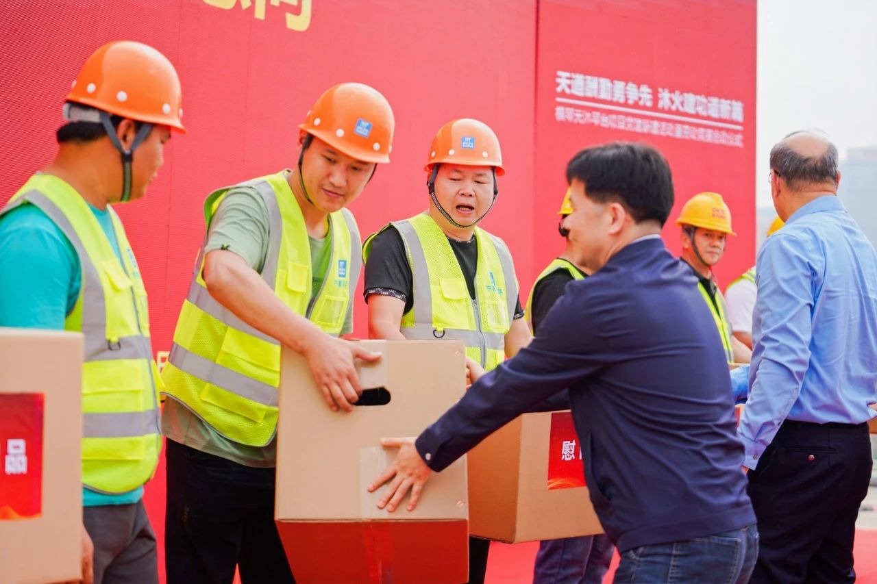 儀式上,宣讀了黨建聯(lián)建暨勞動(dòng)競賽方案,簽訂了黨建聯(lián)建協(xié)議和勞動(dòng)競賽目標(biāo)軍令狀;與會(huì)領(lǐng)導(dǎo)為項(xiàng)目黨建品牌“建證·粵澳先鋒”揭牌,進(jìn)行了黨員先鋒號授旗,并慰問了一線工友。