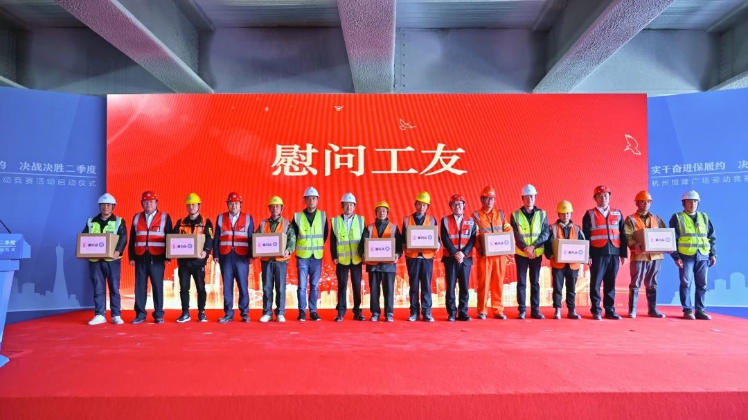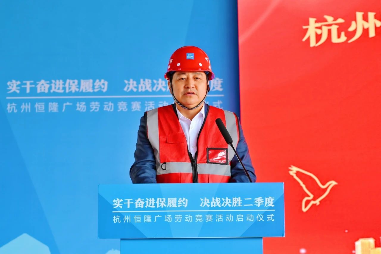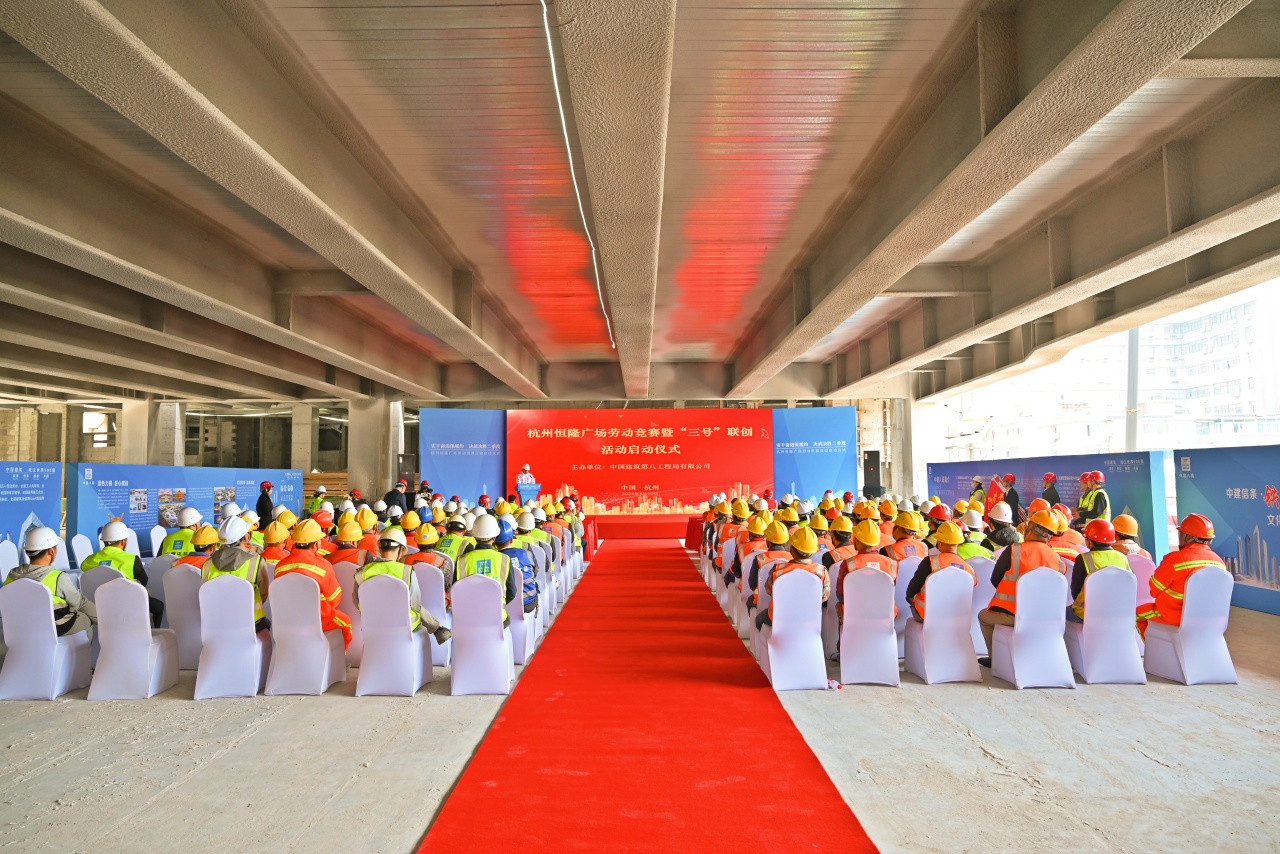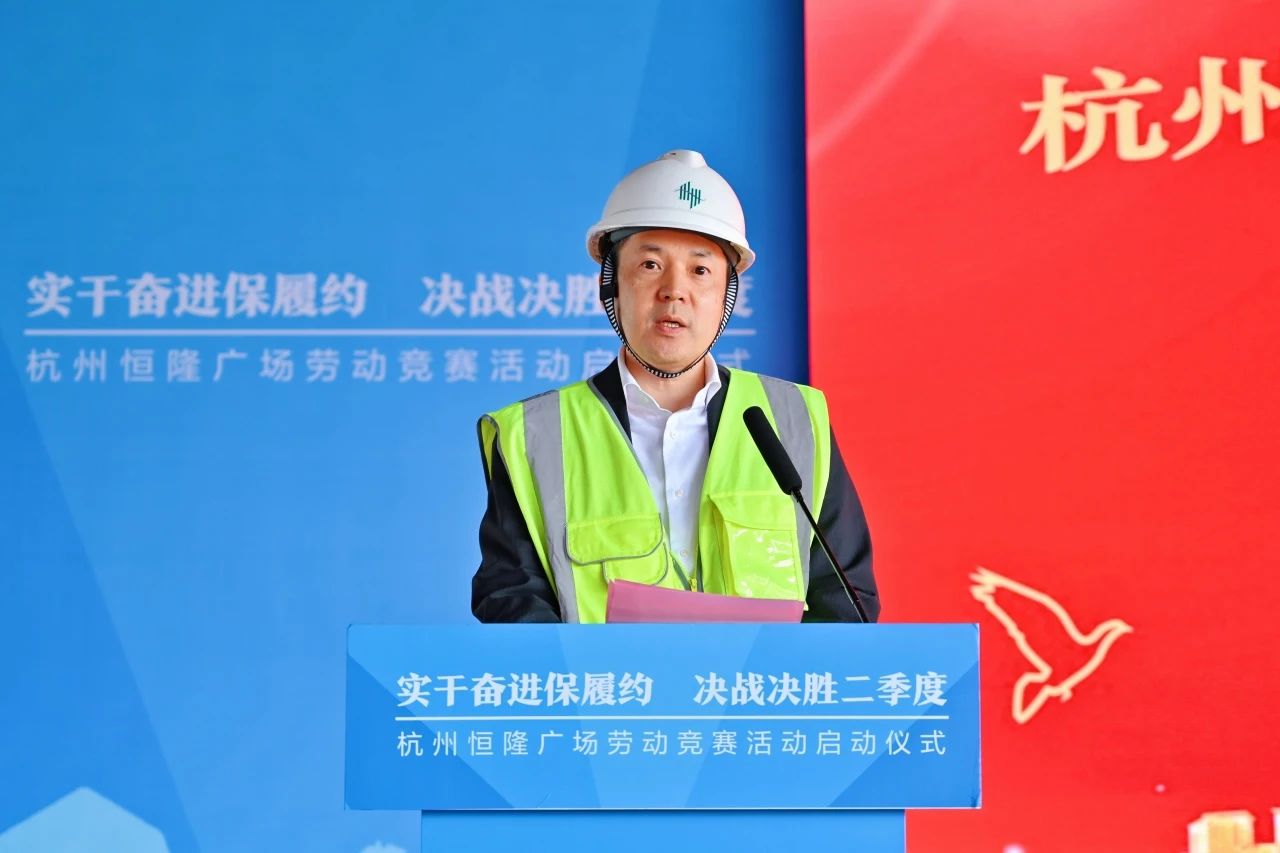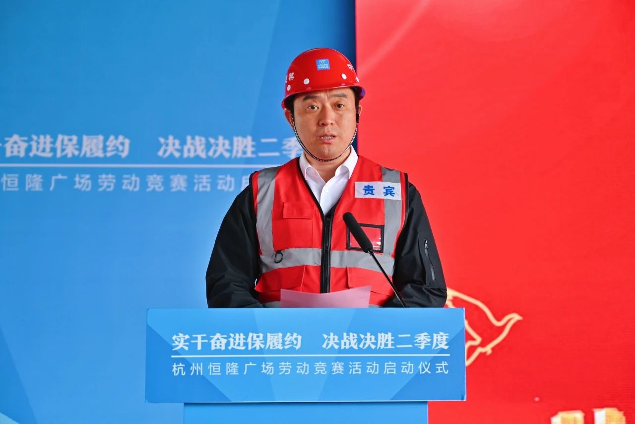 實干奮進保履約,決戰決勝二季度。4月10日,位于杭州拱墅區武林廣場商圈的恒隆廣場項目舉行勞動競賽啟動儀式。恒隆地產有限公司董事唐龍添,杭州恒隆房地產有限公司副總經理陳永強、江錦正、吳嘉麒、朱家華,中建八局華東分局黨委副書記王鵬,中建八局一公司黨委副書記、總經理牛化憲,副總經理霍文濤、辛建龍,工程管理部、工會工作部及華東公司相關負責人等共計100余人參加。