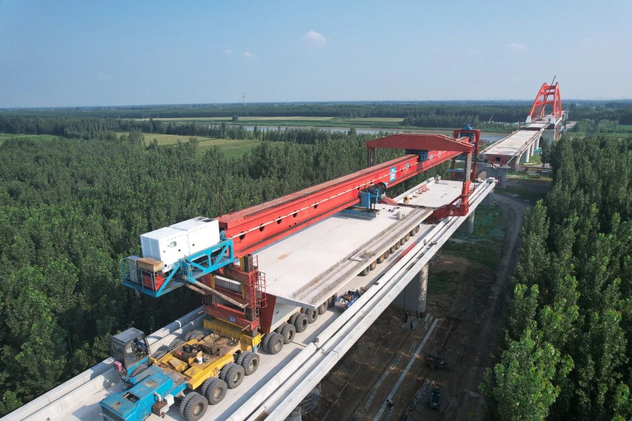 自2023年5月開始架梁施工以來,項目團隊嚴格落實施工計劃,穩步推進建設進度,已完成大里程(首架)方向共計349孔箱梁架設任務。