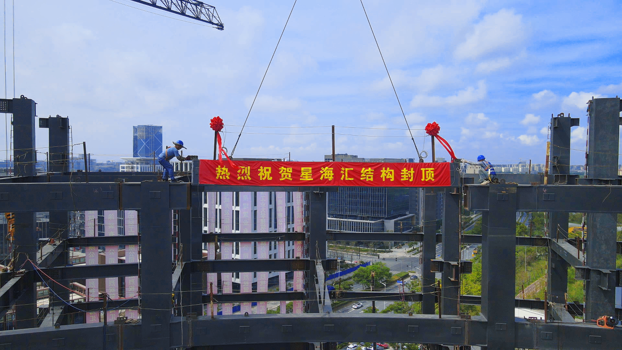 8月20日,隨著封頂鋼梁的吊裝完成擁有國內(nèi)地上最高室內(nèi)亞克力深潛池的臨港星海匯項目完成主體鋼結(jié)構(gòu)封頂,項目建設按下“加速鍵”。
