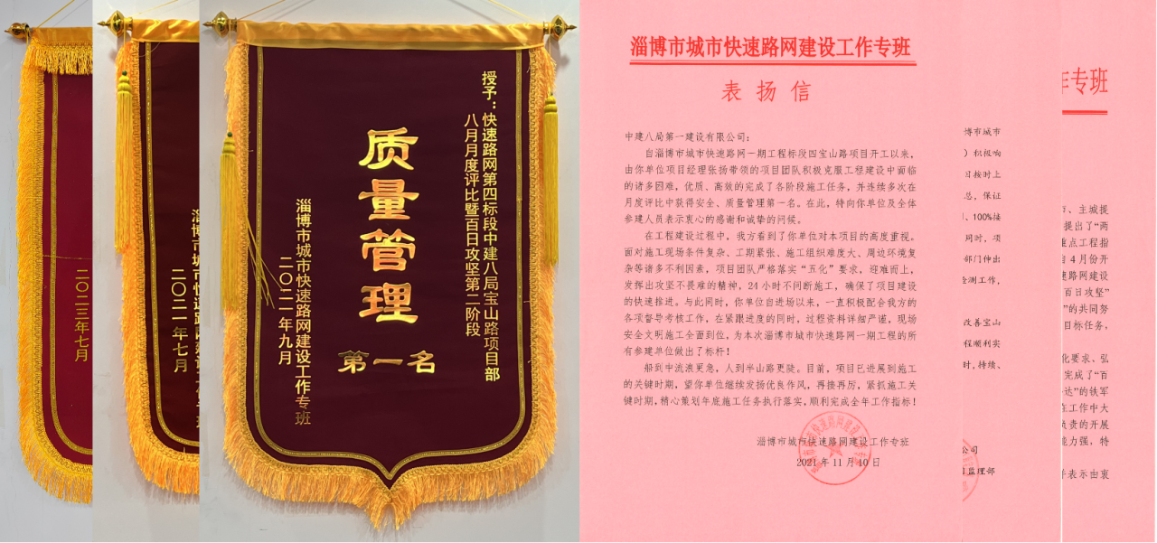 累計迎接中國市政工程協會等大型觀摩交流50余次,在業主組織的勞動競賽和表彰大會中獲得安全管理、質量管理第一名、“施工突出貢獻單位”等榮譽,累計收獲20余封表揚信和錦旗。