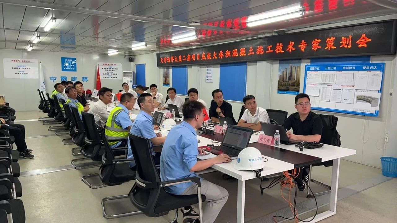 針對3.2米超厚底板,協調組織經驗豐富的專家團隊實地勘察現場進行技術策劃,提出支撐梁掛設無動力溜管澆筑法優化建議,積極協同相關參建方開展基礎底板施工方案論證會,針對鋼筋支架、混凝土配合比試配,水化熱驗算、溫差控制與混凝土養護等全過程進行細致梳理,為項目大體積混凝土澆筑掃清障礙。