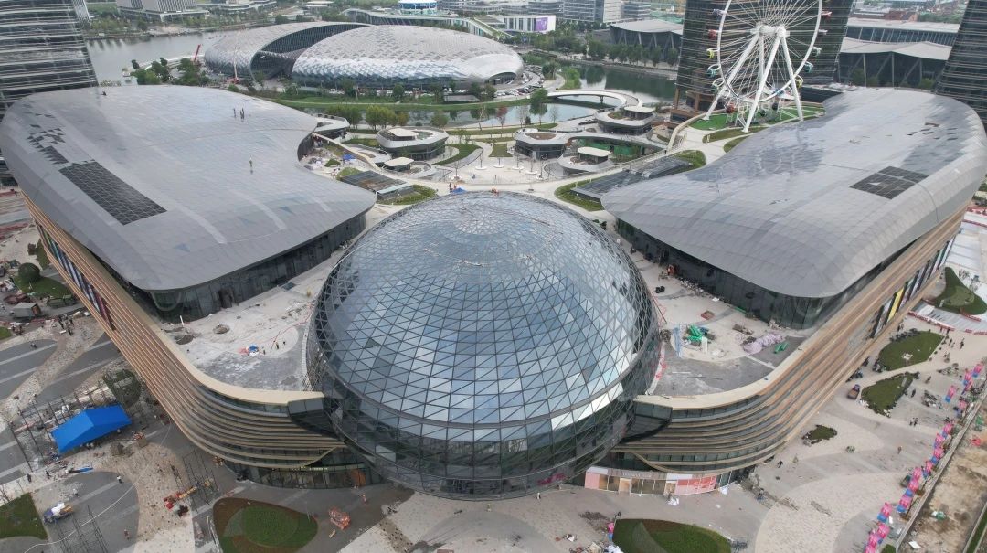 橢球造型長軸68m,短軸54m,采用超大規格的玻璃板材進行裝飾,為打造最優裝飾效果,項目采用三維掃描技術精確建模,將橢球體細分為3528塊不規則三角形平板,確保每一塊玻璃都能完美貼合。