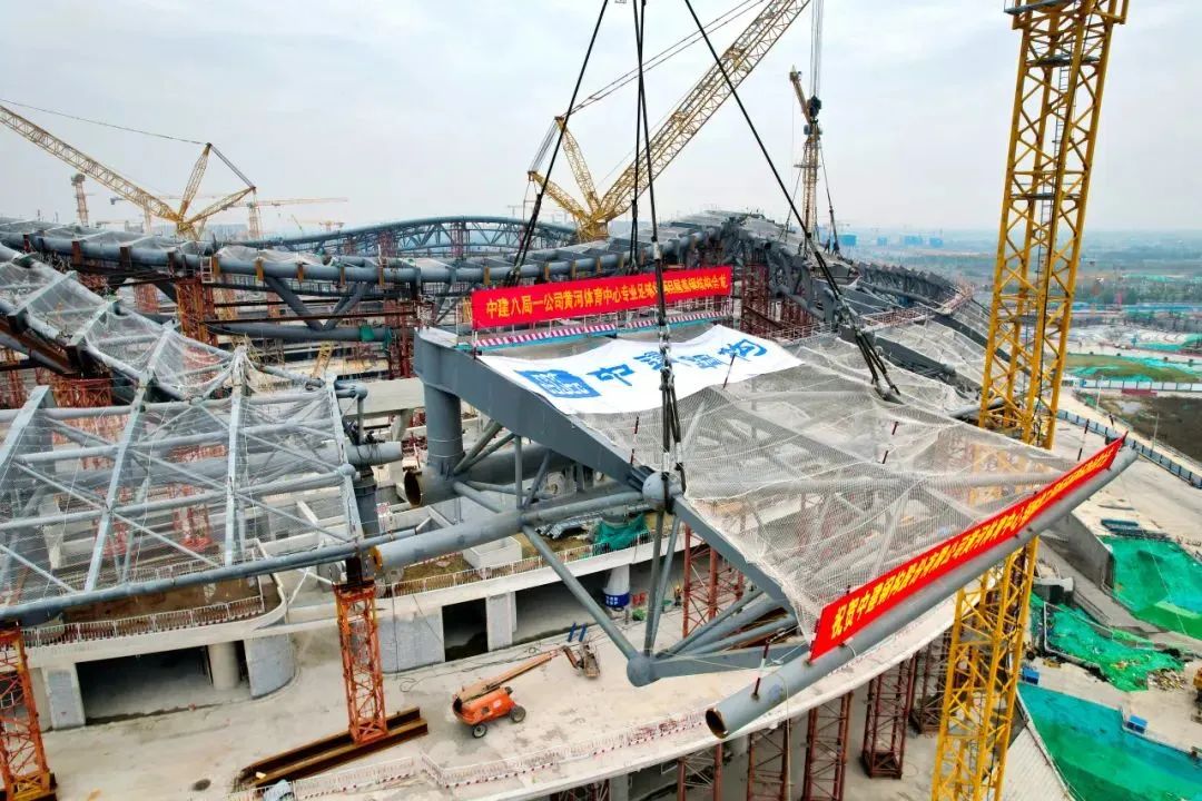 10月21日,隨著最后一榀百噸鋼桁架精準入位,中建八局承建的黃河體育中心專業足球場項目屋蓋鋼結構成功合龍,標志著項目屋蓋鋼結構主桁架施工階段圓滿收官,即將進入索、膜結構施工階段.