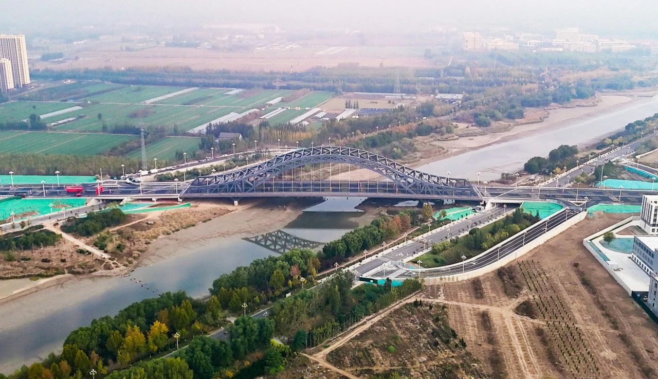 聊城黑龍江路跨徒駭河大橋全長860米,主橋長252米,橋?qū)?6米,采用雙向八車道標(biāo)準(zhǔn),是魯西地區(qū)跨度最大的拱橋,也是全國首座采用UHPC橋面系的中承式鋼結(jié)構(gòu)桁架拱橋,被譽為“魯西第一拱”。