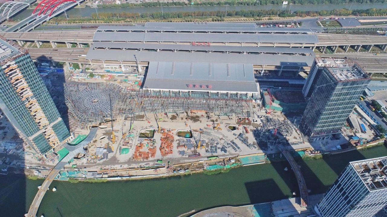 紹興高鐵北站TOD綜合體項(xiàng)目(A區(qū)塊)完成Q5樞紐管桁架全面提升