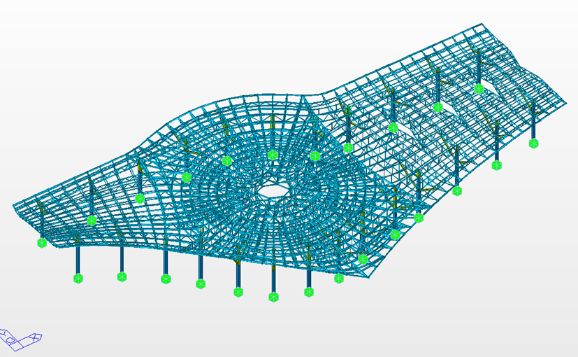 本次提升的Q5樞紐屋面桁架為高鐵站房外集散大廳的鋼屋架,分為東、西兩區(qū)依次提升,東區(qū)長(zhǎng)170米、寬74米、重1600噸,西區(qū)長(zhǎng)180米、寬106米、重2800噸,單個(gè)構(gòu)件最重達(dá)15噸,總提升面積1.25萬(wàn)平方米,提升高度約13.5米,為大噸位、大跨度、大面積的超大型構(gòu)件高空整體提升,對(duì)施工提出了極大挑戰(zhàn)。