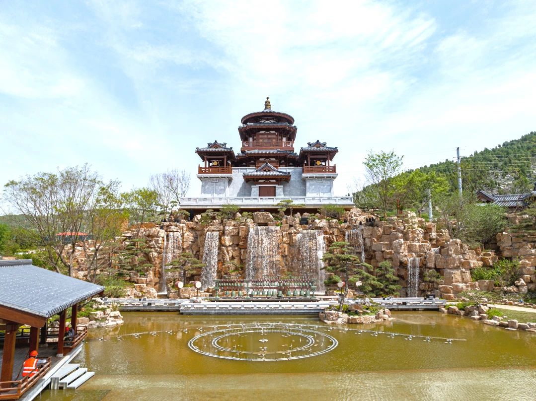 項目制高點文昌閣應用古代圓形攢尖屋頂設計,屋面108壟瓦對應星辰,12道脊代表十二時辰,登頂可俯瞰尼山全景。