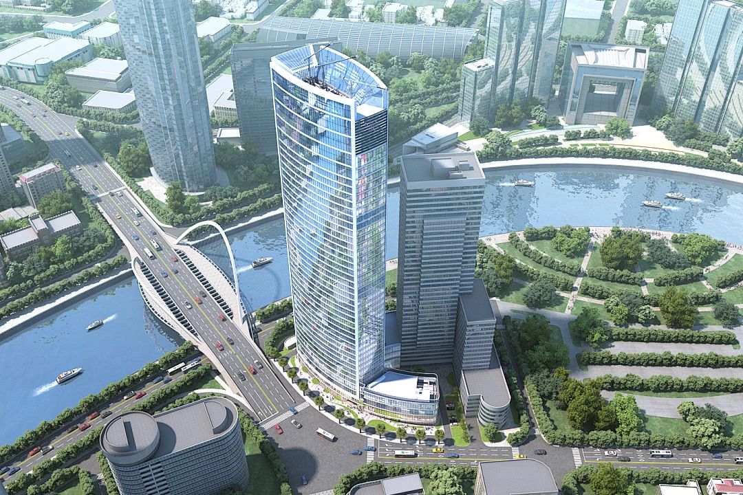 項目地處天津市河北區,建設高度218米,地下5層,地上38層,總建筑面積約10.79萬平方米,南臨海河,東臨大沽橋,毗鄰天津站,地理位置優越,是海河沿線重要的地標建筑,預計2028年竣工。
