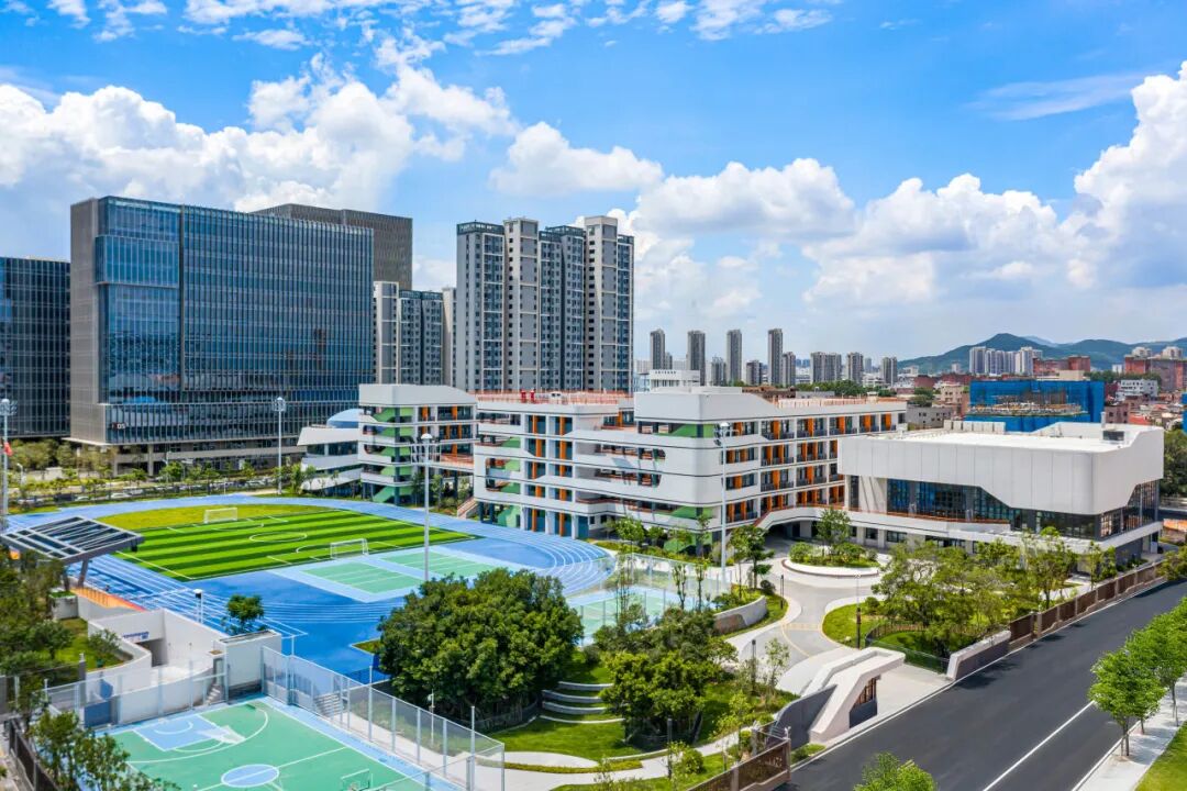 深圳泰寧小學項目位于深圳市羅湖區(qū),總建筑面積 3.07 萬平方米,設置 42 個班,共 1800 余個學位,集教學教室、教師辦公、圖書館、多功能廳、籃球館等功能于一體。