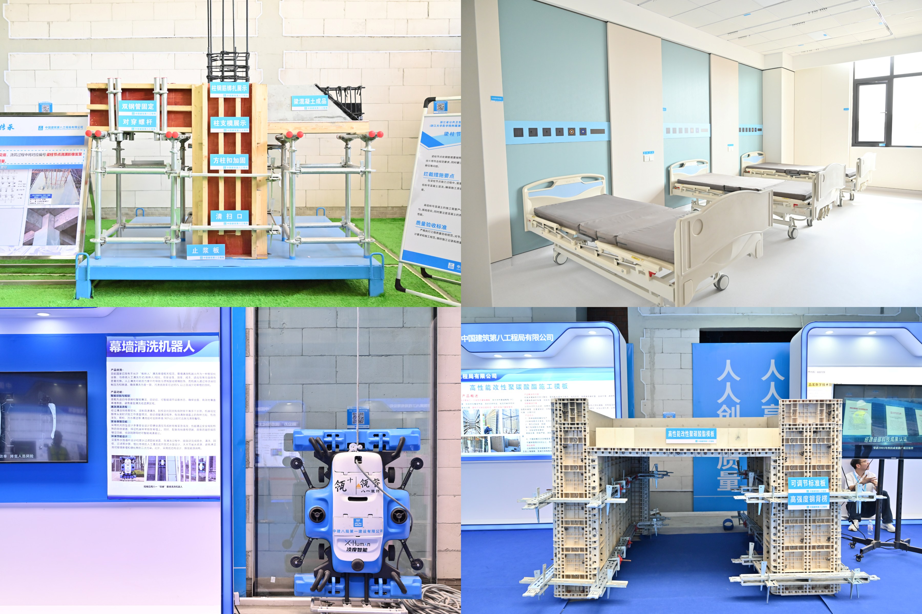 現(xiàn)場設“醫(yī)療好房子、質(zhì)量工藝樣板、質(zhì)量實體樣板、智慧工地”四大展區(qū),由具身智能機器人擔任講解員,展示中建八局在醫(yī)療建筑質(zhì)量管控與科技創(chuàng)新的成果。“醫(yī)療好房子”展區(qū)聚焦“韌性醫(yī)療、院城融合、高效模塊、人文醫(yī)院、綠色低碳”五大核心,展示國際化三級甲等綜合性醫(yī)院與省級公共衛(wèi)生臨床中心一體化運營新模式,以“平急兩用”雙軸并行框架,通過多舉措打造多功能醫(yī)療空間,滿足日常救治與應急保障需求。質(zhì)量工藝樣板展區(qū)集中展示樁基礎、頂板后澆帶等關鍵工序樣板,明確全周期質(zhì)量管控標準;質(zhì)量實體樣板展區(qū)依托實體結構,展示主體結構、設備安裝、裝飾裝修等成型質(zhì)量。智慧工地展區(qū)呈現(xiàn)剪叉車安全平臺、智能施工升降機、無人塔吊模型、各類機器人等智能裝備,以科技創(chuàng)新注入“新質(zhì)生產(chǎn)力”。