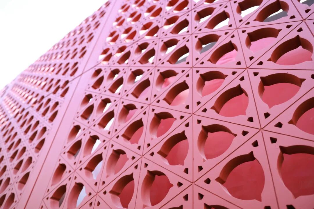 項目采用 “三段式” 古典宮殿結構,將太和殿的重檐、中和殿的寶頂、保和殿的屋脊曲線等經典意象融入設計之中。為還原那抹莊重的 “故宮紅”,項目團隊歷經 6 個月、上百次的配比試驗,研發出 UHPC 超高性能混凝土幕墻。該幕墻強度達常規混凝土的 3 至 4 倍,且在材料中加入了 304 不銹鋼纖維,有效提升結構抗裂性能,形成對 UHPC 飾面故宮紅的防褪色技術,確保紅墻在百年風雨中依舊鮮艷。