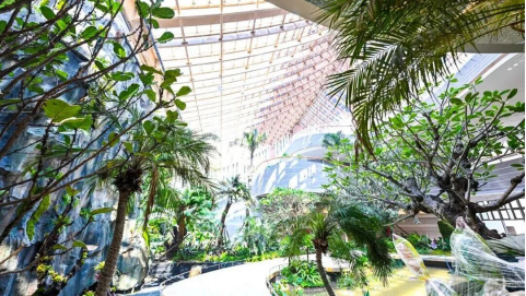 場館內(nèi)部打造約4000平方米的綠植生態(tài),其中,1000平方米溫室雨林館內(nèi)將展出珍稀的新加坡植物,通過傳統(tǒng)建筑語言的現(xiàn)代化構(gòu)建、內(nèi)部空間溫室化、生境營建等綠色技術(shù)的綜合應(yīng)用,營造一個(gè)低碳、舒適、健康的開放空間。