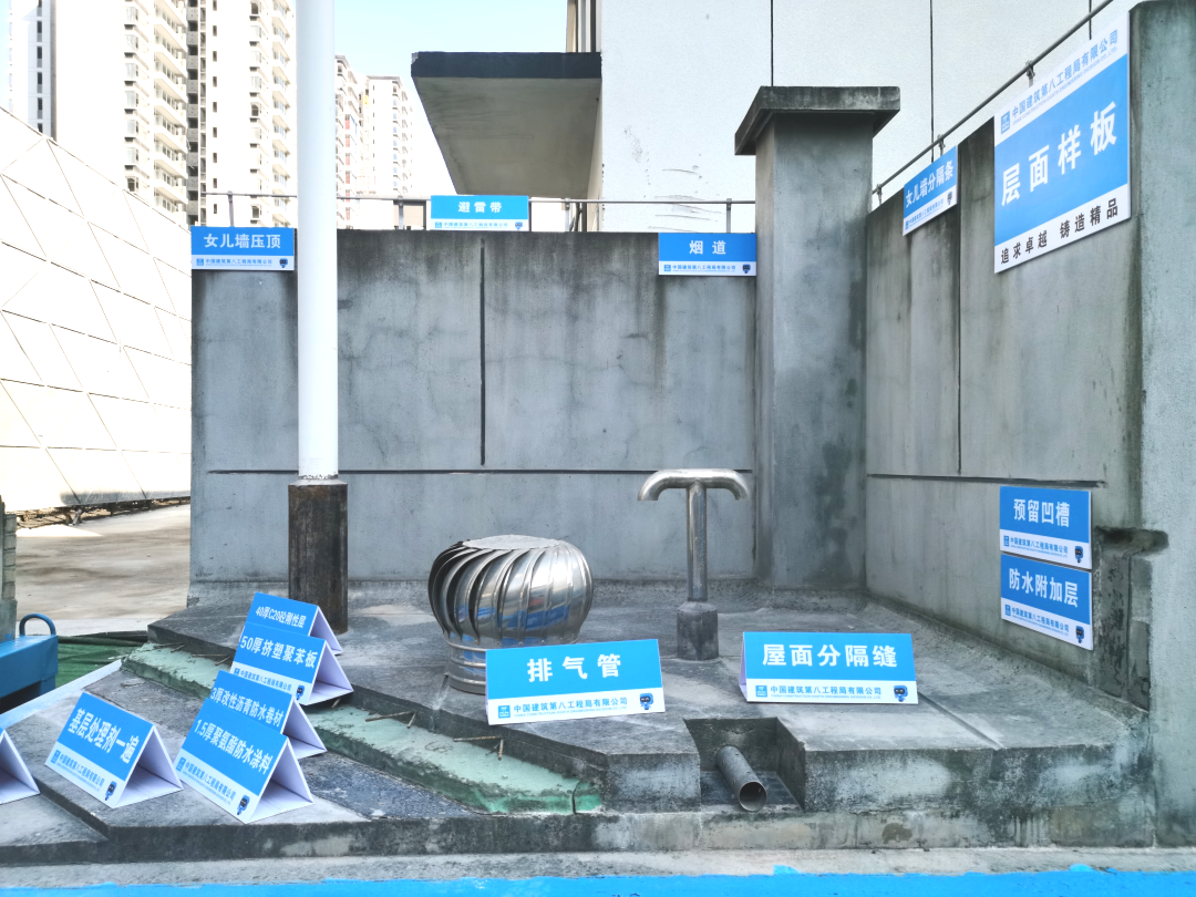 項目踐行全員履職、掛圖作戰(zhàn),將 “一目標(biāo)一指令一圖六計劃” 上墻公示,通過 “月初掛牌明確任務(wù)、月中跟蹤督導(dǎo)、月底考核兌現(xiàn)” 的閉環(huán)管理,推動現(xiàn)場各工序高效開展,僅用 346 天便完成主體結(jié)構(gòu)封頂,助力項目實現(xiàn)完美履約。充分發(fā)揮完全總承包管理優(yōu)勢,項目高標(biāo)準(zhǔn)開展安全質(zhì)量管控工作:累計打造鋼筋綁扎、模板支設(shè)、管道安裝、衛(wèi)生間防水等 37 項實體樣板;完成實測實量超 3000 個點位;開展防滲漏專項治理,優(yōu)化混凝土配合比、模板支撐設(shè)計、回填層疏排水機(jī)制的關(guān)鍵環(huán)節(jié),確保屋面、衛(wèi)生間等薄弱部位無滲漏;過程中嚴(yán)格落實留痕管控,讓質(zhì)量 “看得見”、責(zé)任 “可追溯”,助力各分部分項工程一次成優(yōu)。