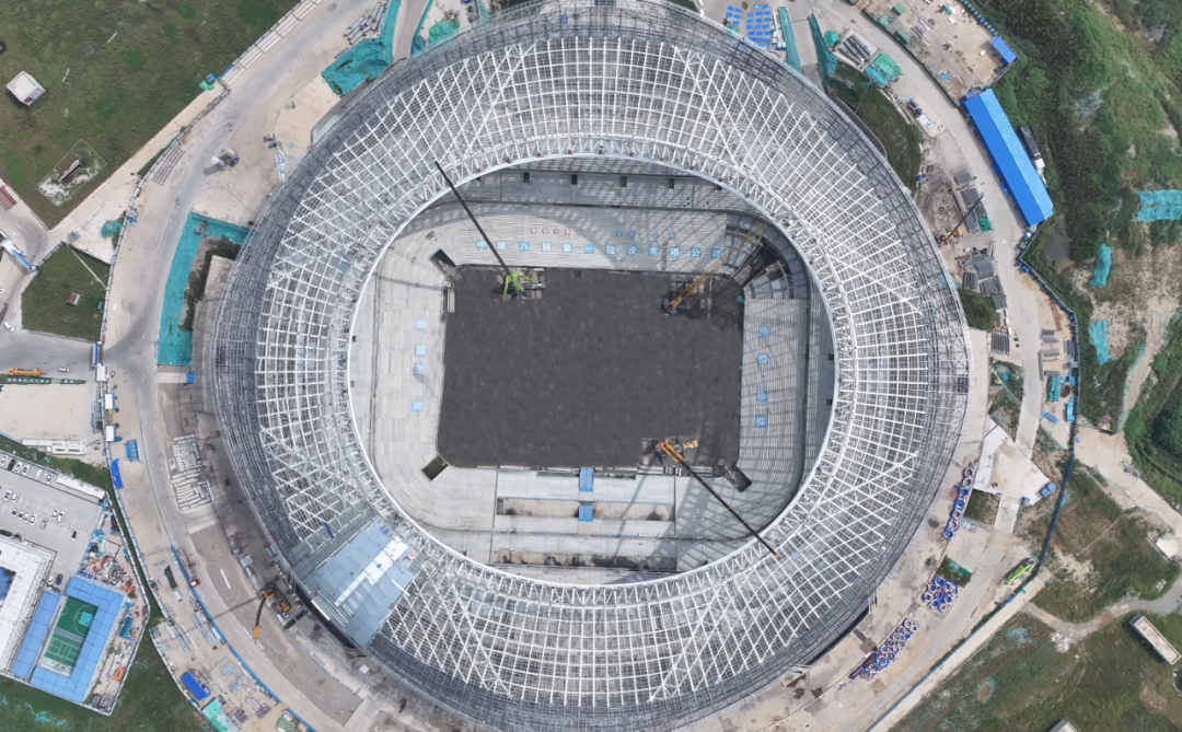 同時,項目正全力推進金屬屋面、防水層、隔音層等部位施工,即將進入難度較大的膜結構施工階段。屋蓋內環將打造一圈 “透明屏障”,為足球場提供更優的光照條件,進一步提升觀賽體驗。