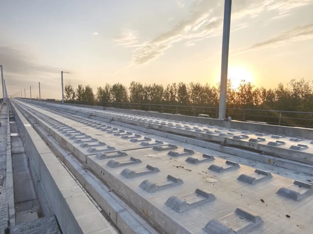 針對自密實混凝土與軌道板材質、當地溫度的適配問題,項目團隊歷經 16 次配比實驗、7 次線下試驗,最終確定最佳混凝土配比方案,有效避免了軌道板離縫、灌注孔脫落等隱患,實現軌道板 “連板成線” 的緊密銜接。