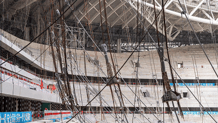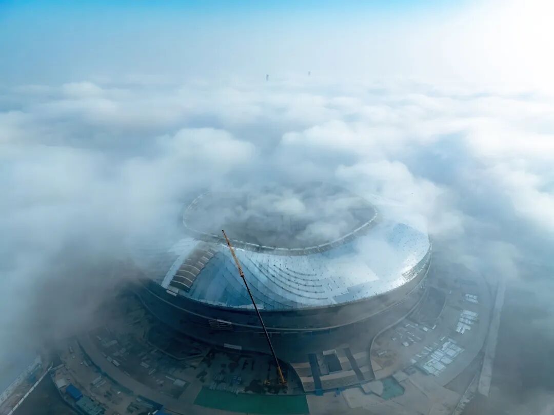 隨著索桁架張拉完成,項目即將進入高透光 PTFE 膜安裝階段。目前,足球場室內水電、裝修等工作同步開展,看臺座椅已開始舒適度比選,金屬屋面即將鋪設面層鋁板,建設者們正高效推進各項建設任務,力爭這座 “黃河明珠” 早日與公眾見面。