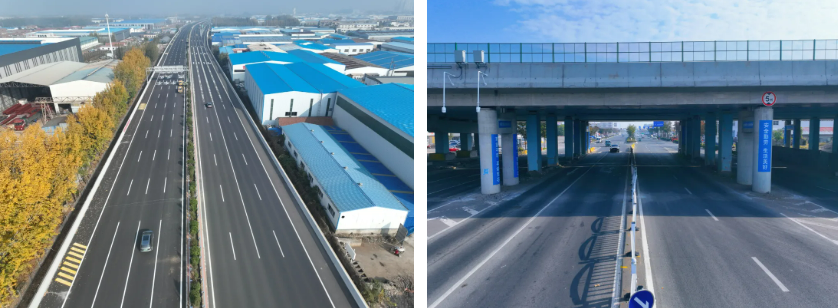 工程沿線跨越多個街道、村落,沿線大型廠房與各類管線密集分布,改擴建工程牽動周邊居民的日常生活。項目充分利用黨建聯建機制,聯動沿線屬地交警、高速運營等 28 家單位,高效疏通管線遷改、交通導改等建設瓶頸,助力解決春耕秋收、農產品滯銷、村莊積水等急難愁盼問題,與周邊居民攜手推動工程建設,全線率先完成橋梁拆除等 10 個關鍵節點。