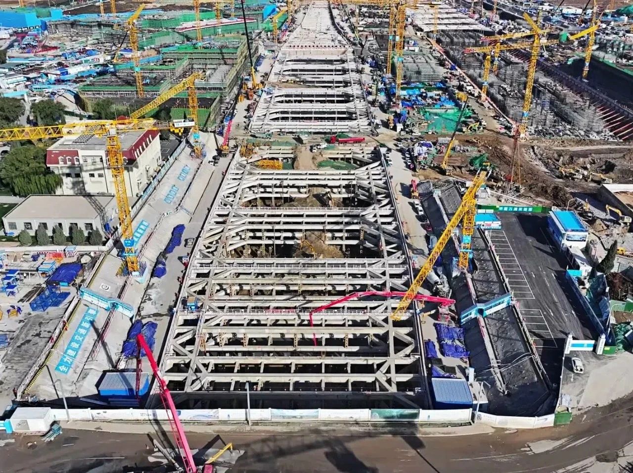 11月22日,中建八局承建的濟濱高鐵遙墻機場站項目歷經30小時奮戰,完成首塊底板共計2800立方米混凝土澆筑,標志著項目進入主體結構施工階段。