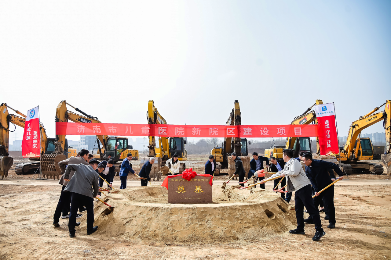 3月28日,中建八一承建的濟南市兒童醫院新院區建設項目舉行開工奠基儀式,濟南市兒童醫院黨委書記張運奎,黨委副書記、院長劉國華,中國建筑技術集團山東分公司總經理魏金玉,中建八局一公司黨委副書記、總經理牛化憲,濟南公司相關負責人等參加。