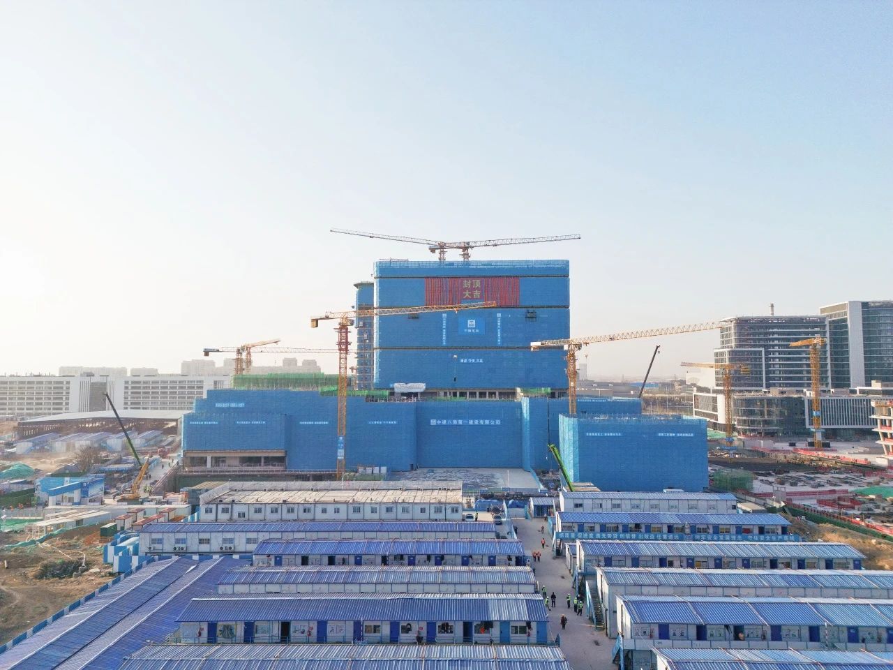 中建八一承建的中國中醫科學院廣安門醫院濟南醫院項目主體結構全面封頂
