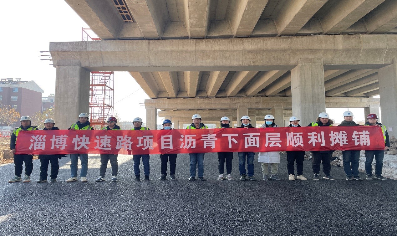 淄博市城市快速路網建設項目瀝青下面層順利攤鋪