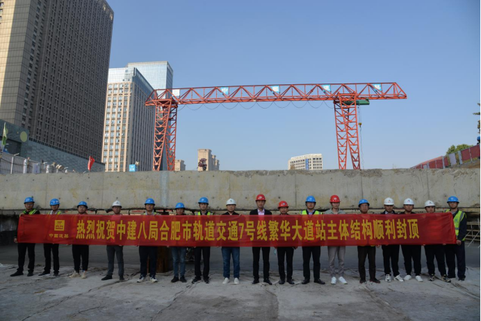 合肥市軌道交通7號線繁華大道站主體結(jié)構(gòu)封頂