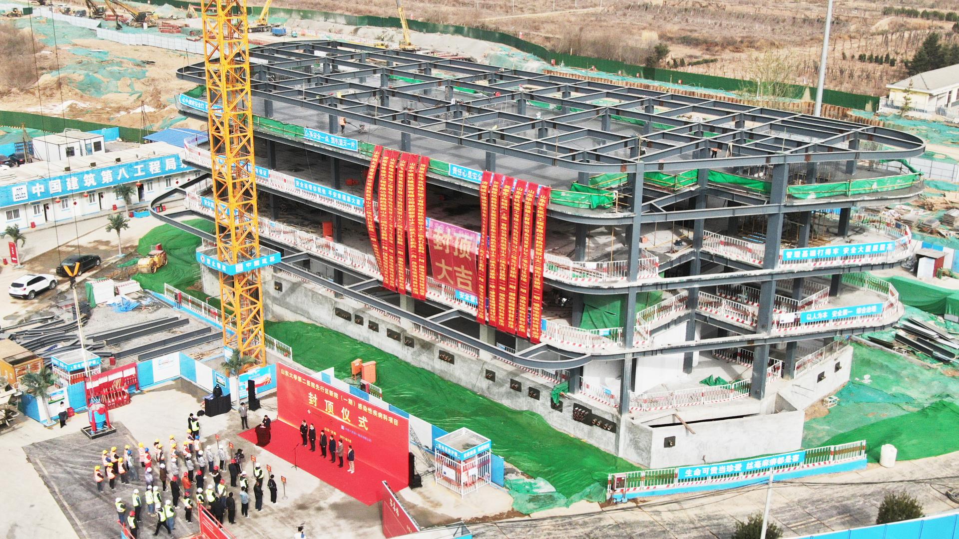 近日,濟南先行區的首家三甲醫院——山東大學第二醫院北院區(一期)感染性疾病科項目,奮戰63天,提前9天完成主體結構封頂這一重要節點目標。