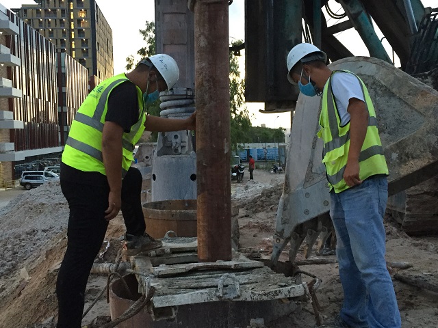 柬埔寨德瓦度假村項目OFFICE-3第一根支護樁成功灌注
