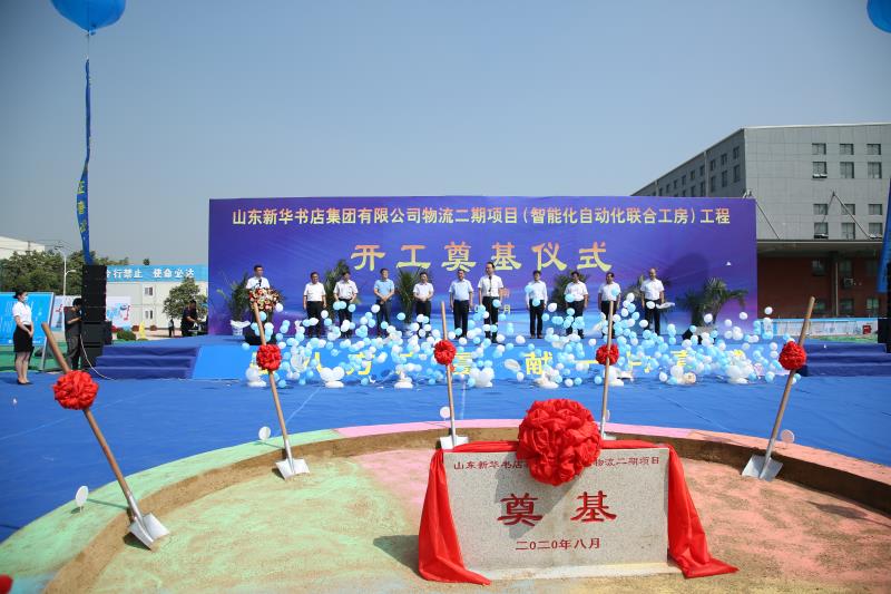 8月28日,山東新華書店集團有限公司物流二期項目隆重開工。 濟南高新區智能裝備城發展中心主任王思國,山東出版傳媒股份有限公司副總經理范波,山東新華集團有限公司總經理彭忠喜,山東新華物流有限公司總經理王寧等出席項目開工奠基儀式。