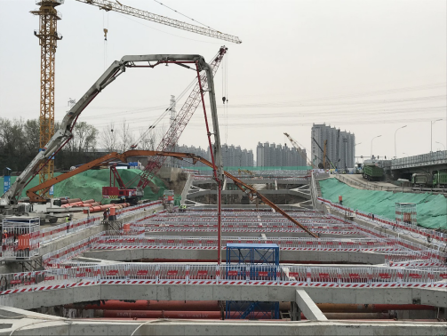 公司北京廣渠路東延項目北運河二期工程首倉底板順利澆筑完成