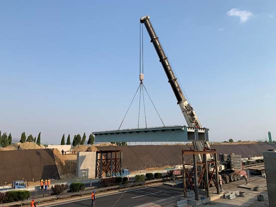 京臺改擴建項目二標(biāo)跨主線天橋鋼箱梁中跨順利架設(shè)
