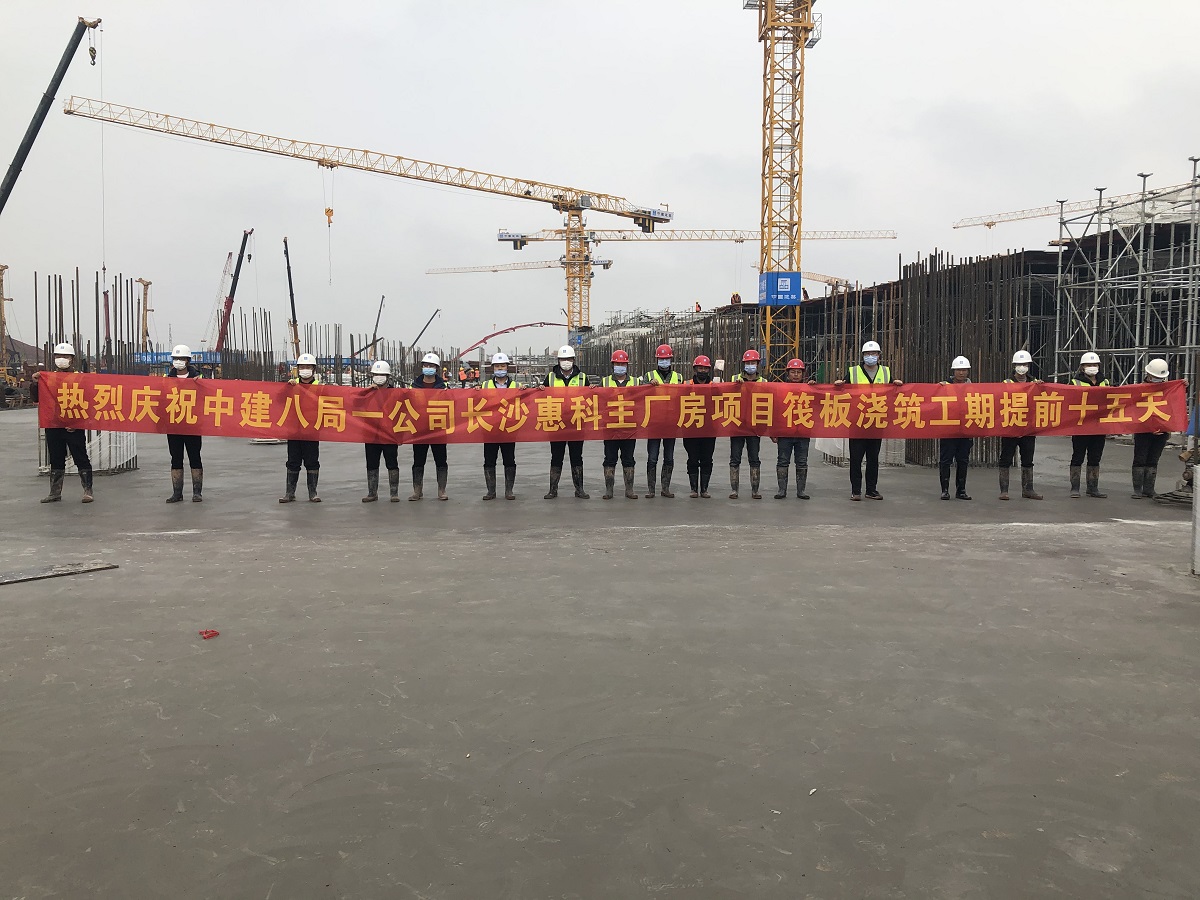 長沙惠科項目 主廠房D區(qū)筏板提前15天澆筑完成