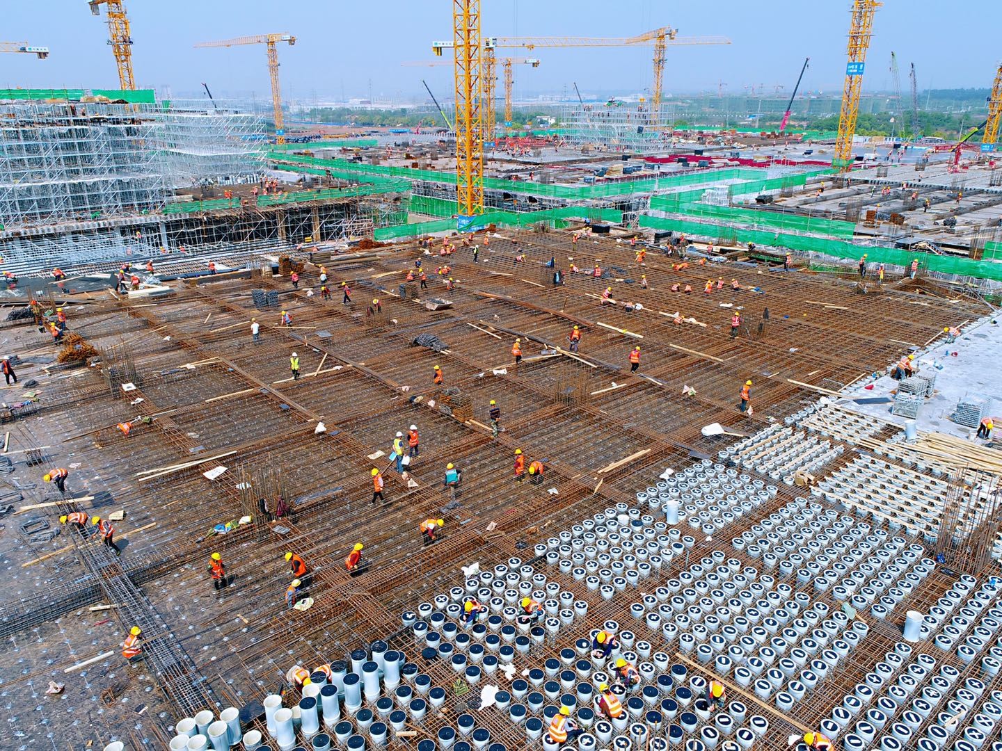 4月11日,長沙惠科第8. 6代超高清新型顯示器件生產(chǎn)線項目主廠房C、D區(qū)完成全部筏板澆筑,全面沖出正負零,順利完成了關(guān)鍵性節(jié)點目標(biāo),取得了階段性的成果。