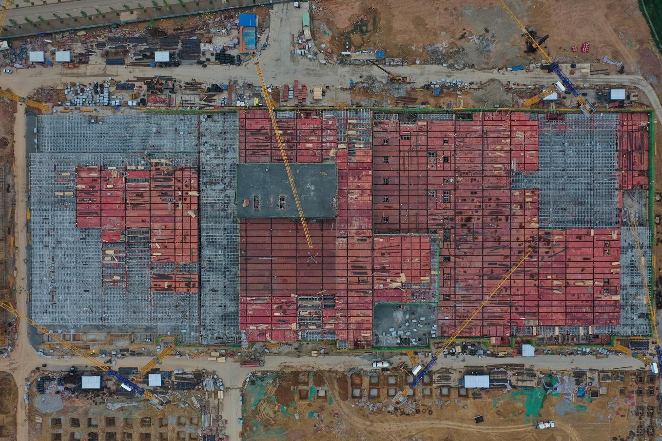 6月10日上午,伴隨著最后一方混凝土的澆筑到位,四川長虹智能制造產業園智慧顯示終端項目G01多媒體廠房A2流水段順利完成主體結構封頂。