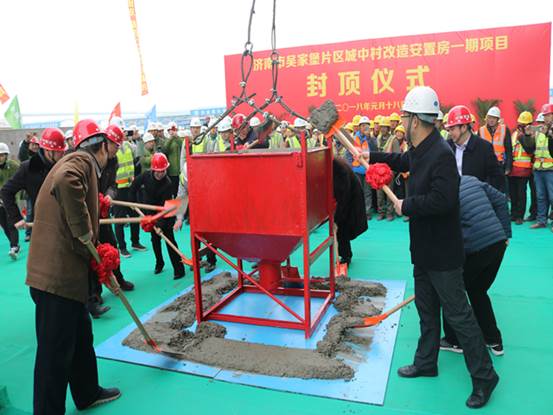 2018年1月18日上午10時17分,公司濟南市吳家堡片區城中村改造安置房一期項目主體結構喜封金頂。