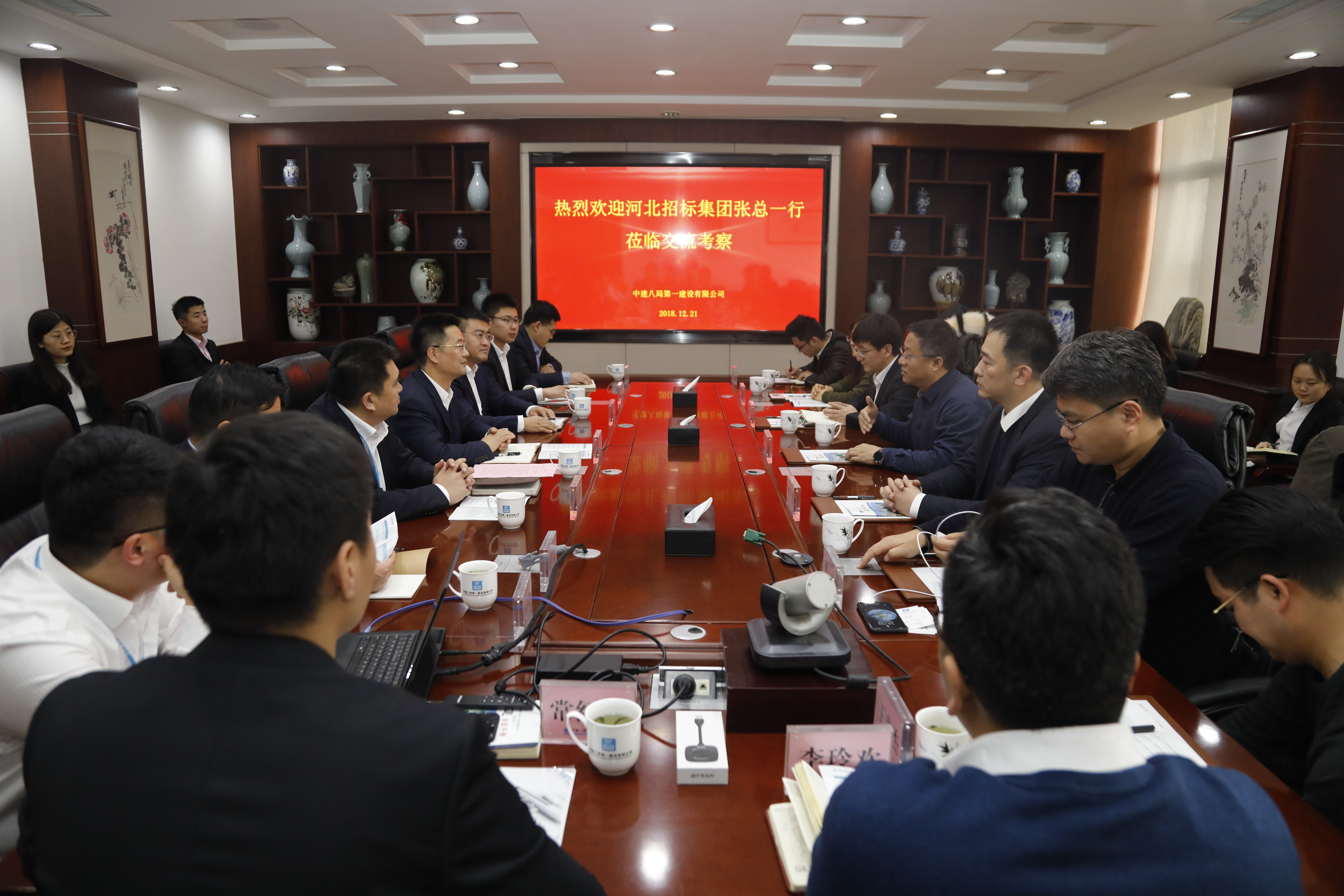 張杰總一行首先參觀了公司文化展館,對我司鐵軍文化、企業(yè)管理、工程技術(shù)以及所取得的成就給予了高度評價(jià)。公司副總經(jīng)理王有標(biāo)對張總一行來訪表示熱烈歡迎,雙方領(lǐng)導(dǎo)相互進(jìn)行介紹,隨后進(jìn)行了深入、熱烈的專業(yè)交流。