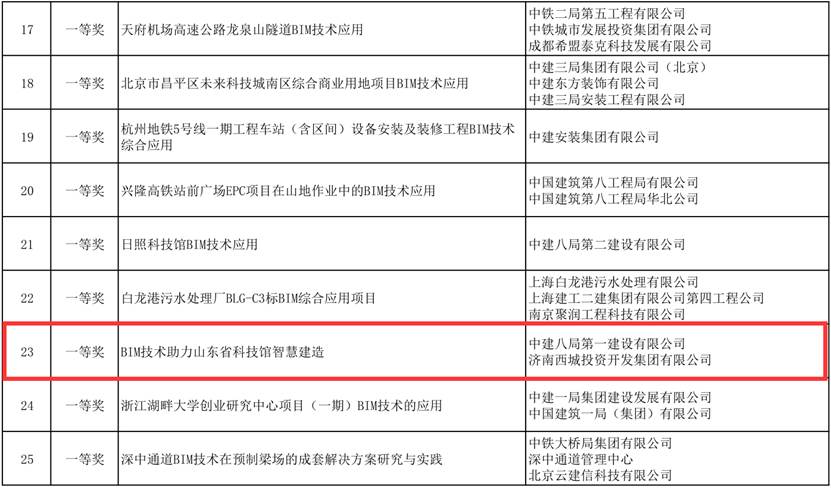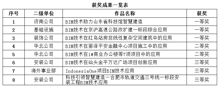 我公司在本屆比賽中通過精心策劃,合理組織,憑借BIM技術的深度應用與研發創新,最終獲得一等獎3項,二等獎2項,三等獎3項的歷史最佳成績,業內領先地位愈發突顯。