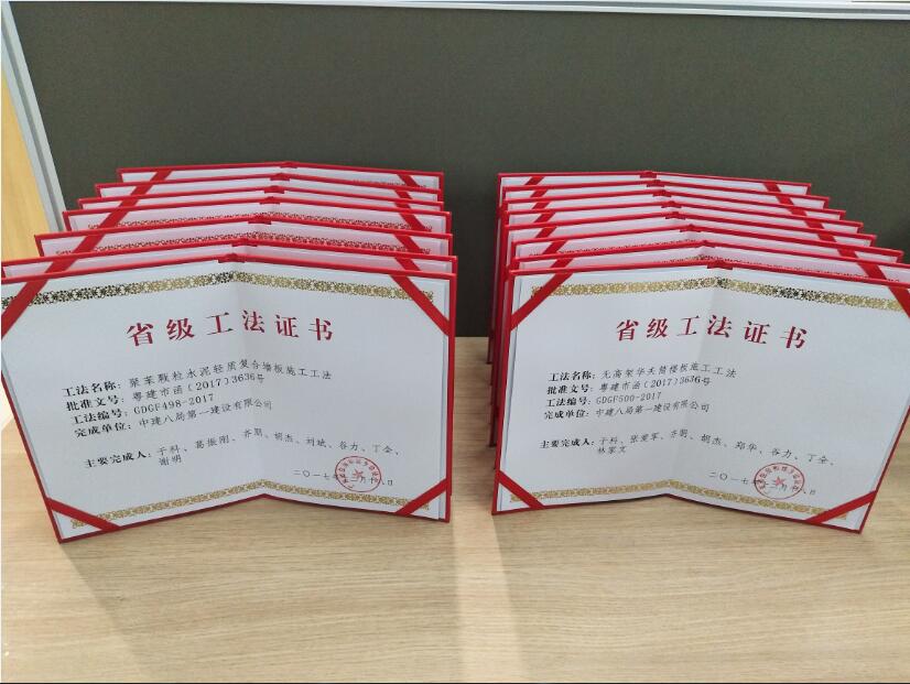 1月24日華南公司領取了廣東省住房和城鄉建設廳下發的15項省級工法證書,標志著華南公司17年科技獎項圓滿收官。