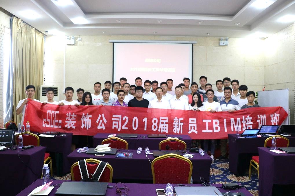 8月16日至23日,裝飾公司在夏日花園酒店二樓會議室舉辦了為期8天的2018屆新員工BIM技能培訓班,裝飾公司總工程師姜樹仁,裝飾設計所經理李寶存、研發中心業務經理杜敬偉、郭振龍、明明、李巖、張傳森及裝飾公司2018屆全體新員工參加了此次BIM技能培訓班開班儀式。