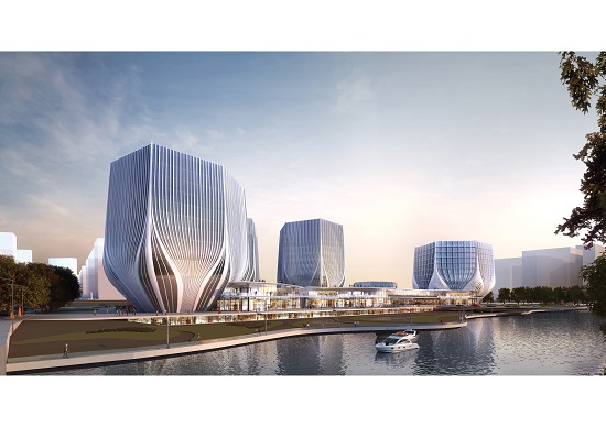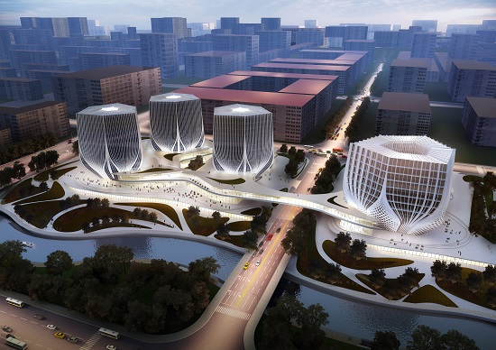 項目位于鄭州航空港區鄭港四路與鄭港四街交叉口西北側,總建筑面積約19萬平方米,總投資約18億元,建筑方案系普利茲克建筑獎獲得者、國際著名建筑設計大師扎哈·哈迪德的絕世遺作。項目由裙房和五棟塔樓組成,塔樓的建筑形態以花為設計意向,建成后將成為中部地區首個以設計機構總部辦公為核心功能,集甲寫、五星級酒店、商業、會議、研發、展示、制作等功能于一體的一站式設計創意綜合體。