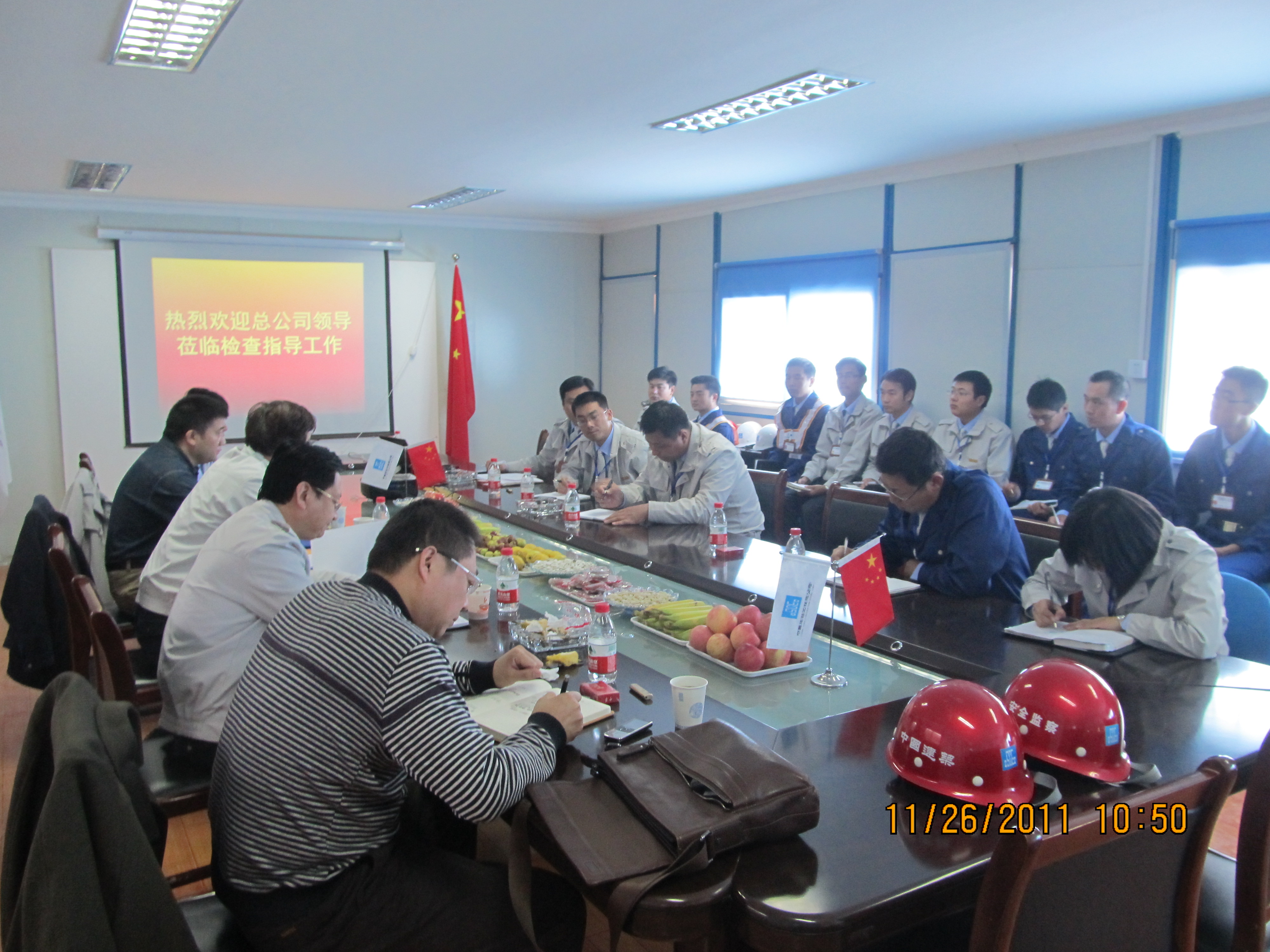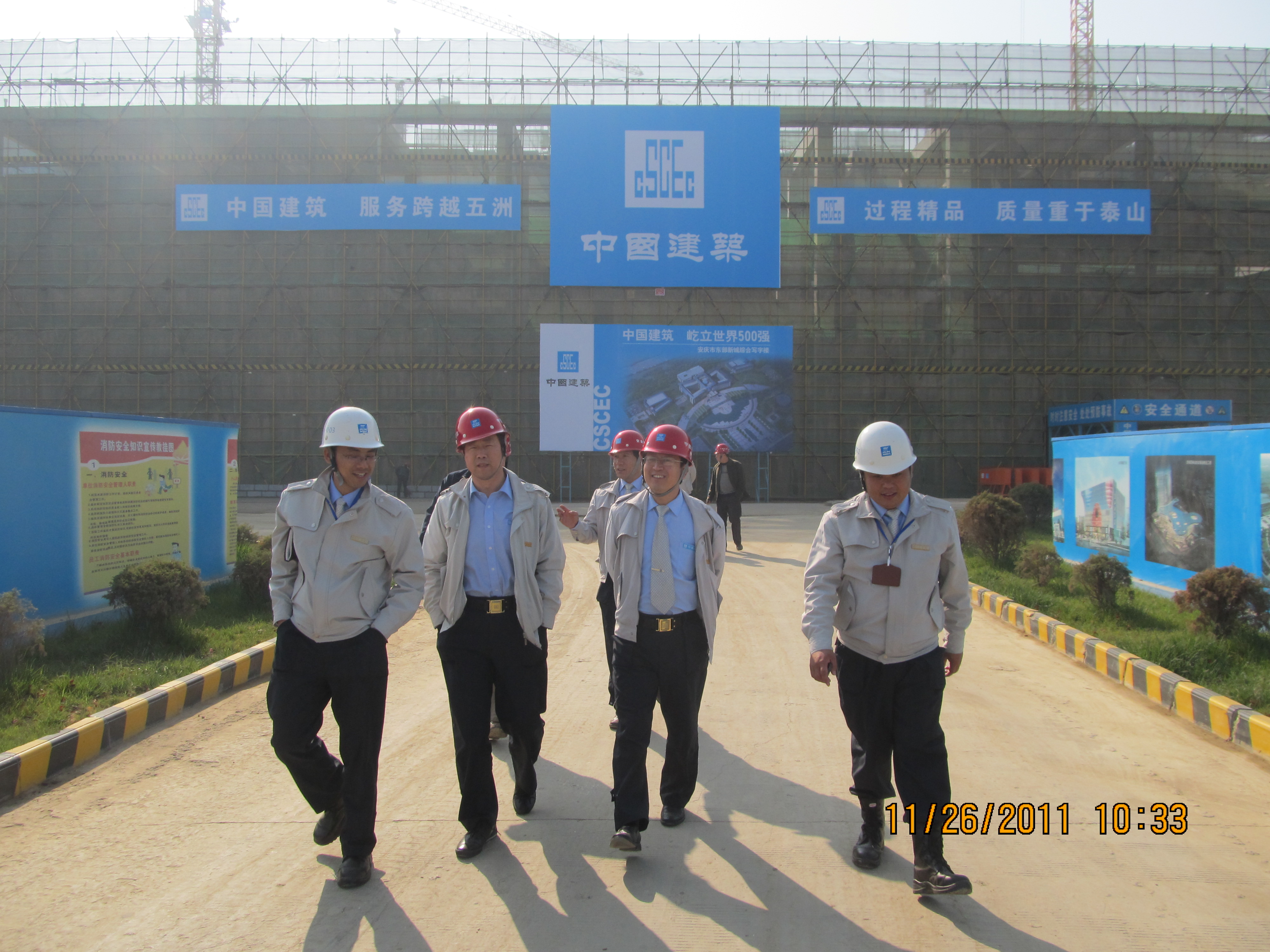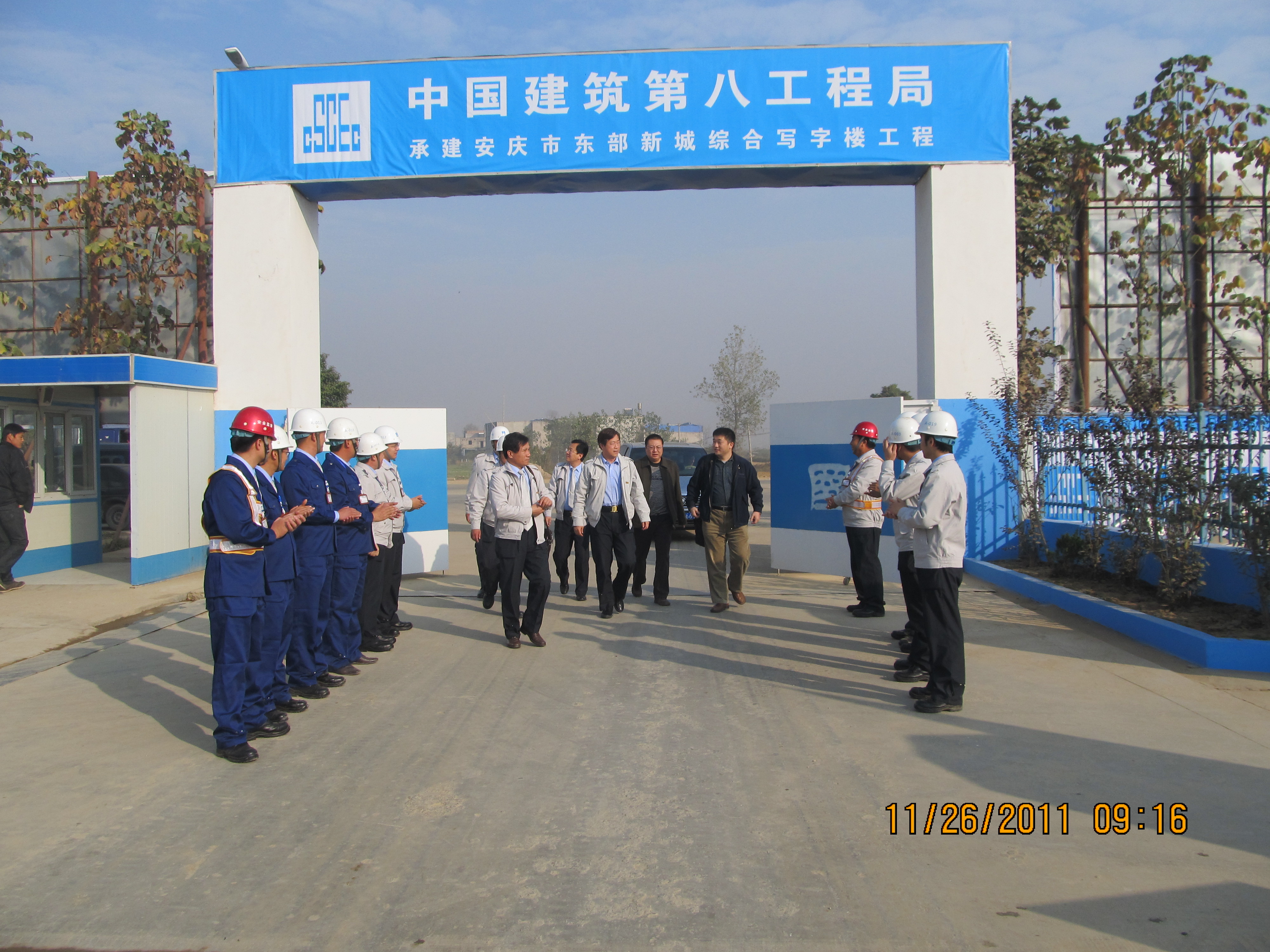 2011年11月26日,中建總公司政工部CI檢查組苑丁處長、中建一局谷峰書記蒞臨安慶市東部新城綜合寫字樓項目進行CI創優驗收。
