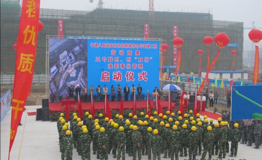 安慶市東部新城綜合寫字樓工程舉行勞動競賽、“三號聯(lián)創(chuàng)”、創(chuàng)雙優(yōu)、準(zhǔn)軍事化管理啟動儀式
