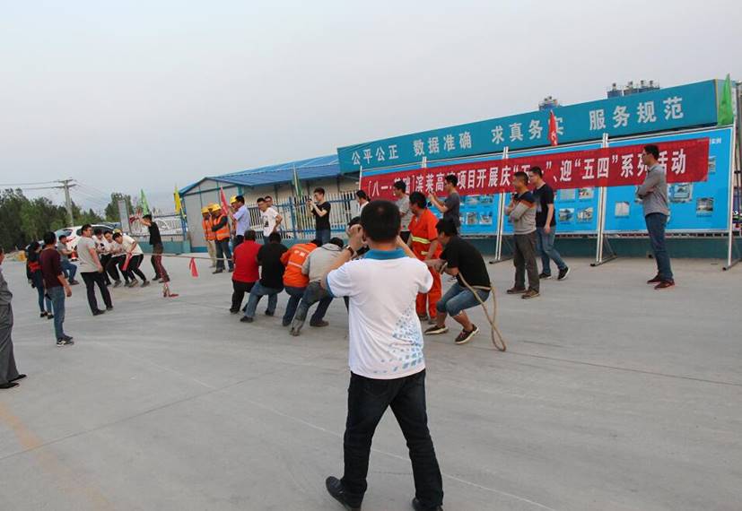 慶“五一”、迎“五四”——4月29日,基礎設施公司濱萊高速項目舉行拔河、乒乓球、臺球、踢毽子、綁腿跑等文體活動。