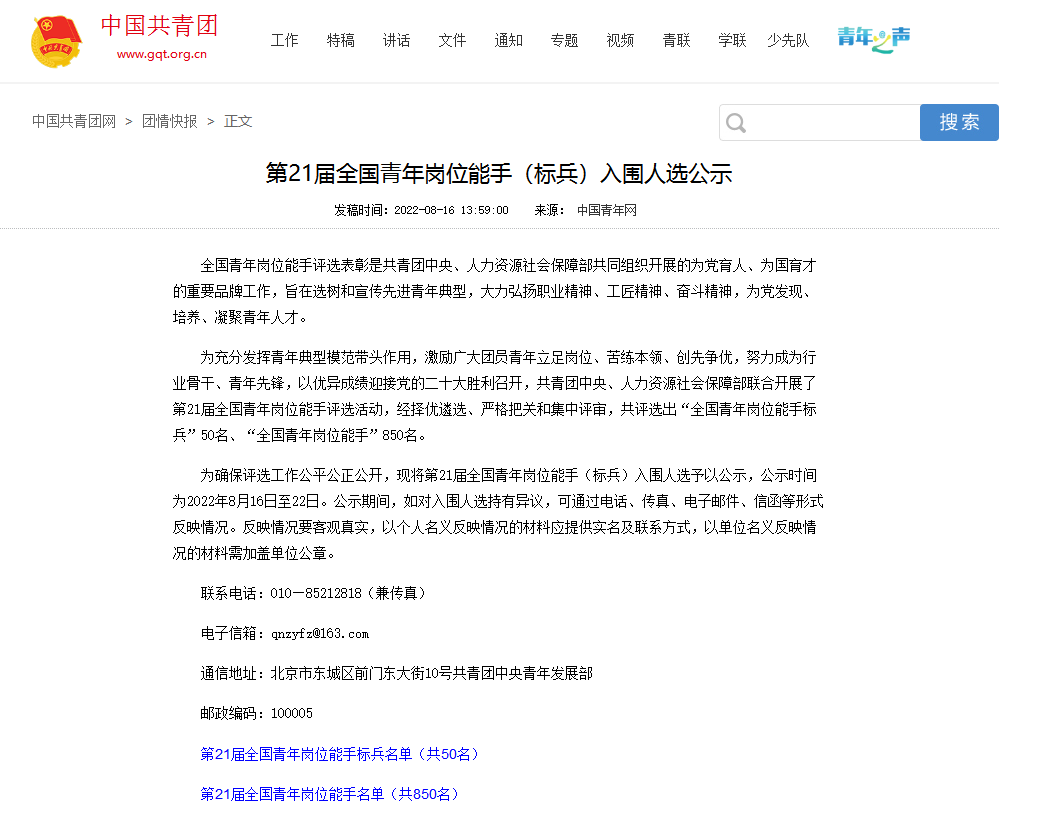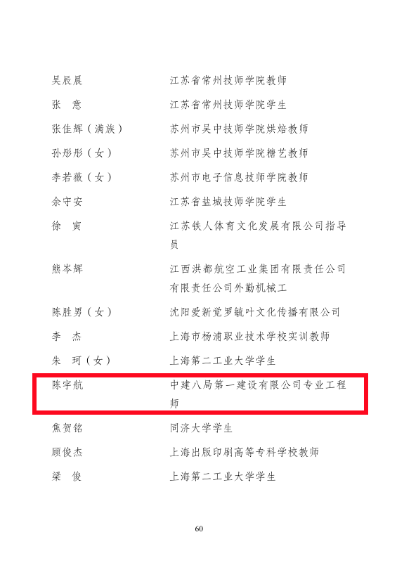 近日,共青團中央公示了第21屆全國青年崗位能手(標兵)入圍人選,中建八局一公司公司員工張業、陳宇航榮獲“全國青年崗位能手”稱號。