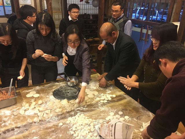 After completion of the speech, Feng Chuntai, together with the participants, saw the Wolf Warriors II. Evacuation of overseas Chinese by warship and passing the fighting area with raising the national flag by hands in the film, let all people be hot-blooded and everyone proud of the increasingly powerful motherland. Afterwards, the project restaurant held a dumpling making event. The consular staff and the project staff worked closely together in dough kneading, rolling and dumpling making, with the harmonious atmosphere, which made the distance between the consular staff and the project staff close.